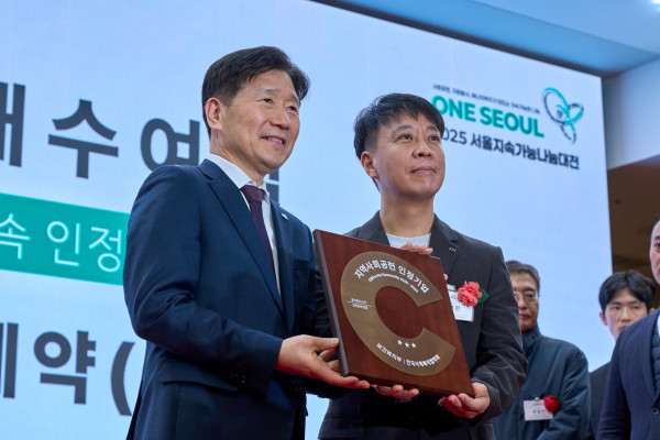 [ 사진 설명: (왼쪽부터)김현훈 서울특별시사회복지협의회 회장, 김정환 콜마홀딩스 지속가능경영사무국 팀장 ]